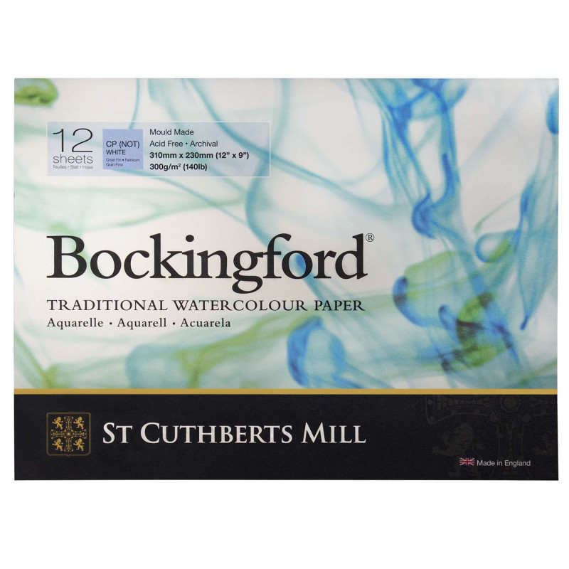 St Cuthberts Bockingford Watercolor Pad, Cold Pressed, Glue Binding, 140lb/300gsm, 12 Sheet, 9x12 inch